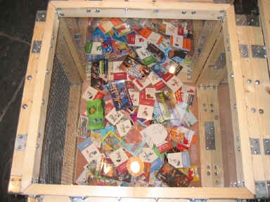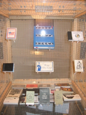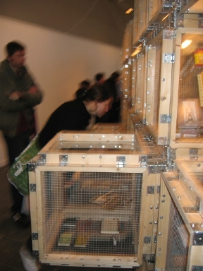 Rennes encore...Hier c’était l’inauguration à l’Orangerie du Jardin du Thabor de la dernière partie de l’exposition. Malgré la pluie beaucoup de courageux se sont déplacés dans un lieu très agréable et très lumineux.Finalement pour ne pas montrer trop d’amoncellements (il y en a deux seulement) les organisateurs ont décidé de ne pas tout présenter. Il y a probablement un peu plus de 2000 flip books à voir plus les 500 qui sont à Lendroit ce qui n’est déjà pas si mal. Mais quelques collectionneurs vont être déçus car on ne voit pas toutes les séries qui sont parfois difficiles à réunir, et moins de flip books anciens que de modernes (il est vrai que les anciens ont souvent des couvertures vierges ce qui n’est pas très parlant). Enfin il y a déjà beaucoup à voir…dans deux grands murs de boîtes et le dvd est visible sur quatre écrans plats et aussi projeté en grand (on ne le voit pas très bien ici car il y avait trop de lumière). Il faut bien choisir son jour si on veut voir à la fois l’Orangerie et Lendroit : en fait un mercredi ou un samedi… C’est jusqu’au 22 avril. 27 février 2007 à 21:57:24