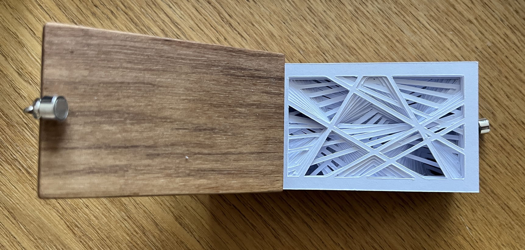Outre les trente pages précisément découpées pour créer l’animation, Matthias Brown a conçu une reliure en noyer et un système d’ouverture et d’attache pour son flip book qui en font, outre un livre d’artiste, un remarquable livre-objet.